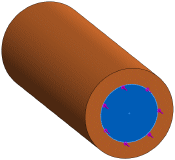 Split a face by intersection. The two bodies must have touching edges or faces. To split the top face of the plate, first select the cylindrical face as a splitting face and the plate's top face as a face to split. The plate's top face splits into two faces.