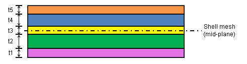 The program locates the plies from the bottom to the top shell face. So, the first ply is located at the bottom face of the shell and the last ply is located at the top face of the shell. Flipping the mesh reverses the ply layup with first layer located at the bottom.