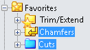 To provide easy access to features such as cuts, holes, and chamfers, you can group them in a subfolder in the Favorites folder.