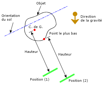 La hauteur spécifiée représente la distance entre le centre de gravité du corps et le sol rigide plan dans la direction de la gravité.