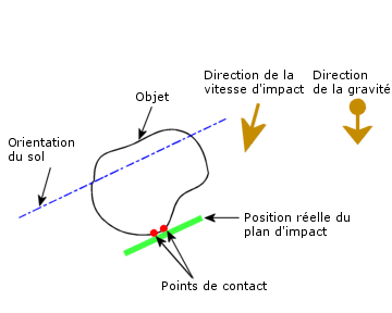 Le plan d'impact est normal à la gravité.
