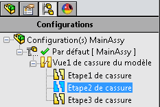 3. Dans le ConfigurationManager, cliquez à l'aide du bouton droit de la souris sur la vue de cassure du modèle ou développez-la et cliquez à l'aide du bouton droit de la souris sur les étapes de la cassure.