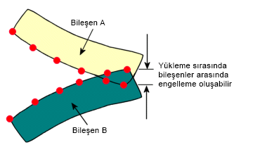 Statik, doğrusal olmayan, frekans ve belverme etütleri için, program temas eden alanlar arasındaki göreli hareket üzerinde hiçbir kısıtlama uygulamaz. Termal etütler için program, temas eden alanlar yoluyla kondüksiyondan kaynaklanan ısı akışını engeller. Statik ve doğrusal olmayan etütler için yükler bileşen veya gövde engellemesine neden olabilir. Uygulanan yükler engellemeye neden olmazsa bu seçeneğin kullanılması çözüm süresinden tasarruf sağlayabilir. Bununla birlikte, uygulanan yükler engellemeye neden olursa sonuçlar geçersizdir.