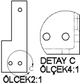 Detay görünüm ölçeği. Detay görünümleri için ölçeklendirmeyi belirtir. Ölçek, detay görünümün oluşturulmuş olduğu teknik resim görünümünün ölçeğine göredir. Kaynak görünüm ölçeği 2:1 ise ve detay görünüm ölçeği 2X ise ortaya çıkan detay görünüm ölçeği 4X olur.