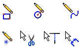 指针在 SOLIDWORKS 中更改形状以显示其看到的对象类型;例如,顶点、边线、或面。 在草图中,指针显示几何关系,如端点、中点、交叉线,以及实体类型,如直线、矩形、以及圆。