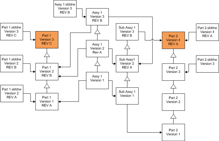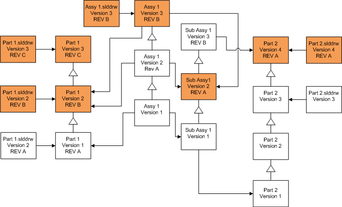 在参考引用的版本串流中,文件版本升级工具还升级最新零件,如蓝色