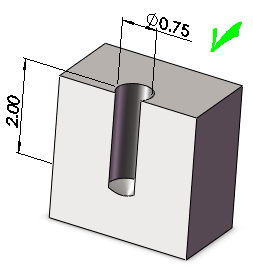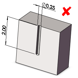 具有较小直径(小于 3.0 mm) 或深度-直径比率较高(大于 2.75) 的孔较难加工,不推荐进行常规批量生产。如果孔是给定深度的孔,深孔还会使清理碎屑更困难。