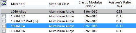 您可以使用尋找類似的材料工具來執行材料搜尋,例如"顯示強度高而密度低的所有材料"或"顯示具有更大剪力模數的類似材料。"