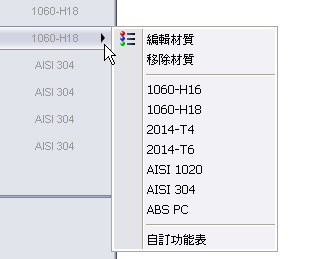 您可以直接在組合件視覺化清單中加入、編輯或移除零組件材質。