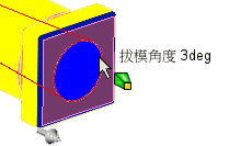 圓形內側的色彩將會更新,以表示拔模角度為 3 度。游標回饋確認拔模角度。