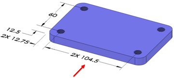 組合零件(扣件浮動選項已清除),TolAnalyst 將輪軸支架中的餘隙鑽孔與頂板中的螺紋鑽孔以同軸心對齊,產生最糟狀況 48.5 的最小值。