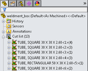 You can have the software automatically name cut list folders in a weldment part using the value of the cut list DESCRIPTION property.