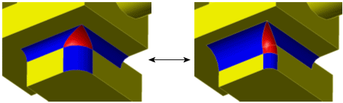 Utilisez l'onglet Coin dans le PropertyManager FilletXpert pour créer et modifier des fonctions de congé sur sommet au point de rencontre exact de trois arêtes arrondies en un sommet.