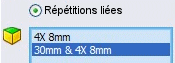 Lorsque la fonction est du type répétition liée, la liste de sélection contient les fonctions SOLIDWORKS utilisées dans sa définition.