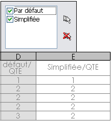 Pour les nomenclatures de pièces uniquement ou les nomenclatures d'assemblages dans une liste en tabulation, sélectionnez une autre configuration à afficher.