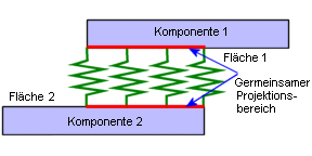 • Sie können eine der beiden Flächen trennen, indem Sie eine Fläche auf die andere Fläche projizieren. Definieren Sie eine Feder zwischen den neuen, auf einander ausgerichteten Flächen.