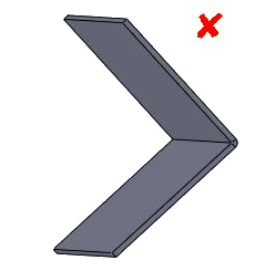 Wenn eine Biegung zu scharf ist, kann das Material brechen. Als allgemeine Richtlinie gilt, dass der innere Biegeradius größer als die Materialdicke sein soll.