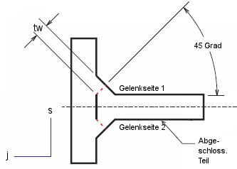 Die Schweißnahttraktionen werden in Schweißnahtverengungskoordinaten lt. Abb. aufgelöst. Die Schweißnahtverengung ist an der Wurzel konzentriert.