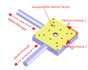 Diese Option können Sie nur verwenden, wenn alle ausgewählten Flächen eben sind. Jede Fläche kann eine andere Ebene haben. Jede Fläche ist in ihre eigenen Richtungen (Richtung 1, Richtung 2 und Normal) gelagert.