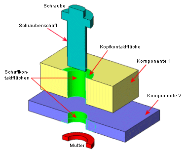 Wählen Sie die Bohrungsflächen einer Komponente aus, die mit den Gewinden in Kontakt steht.