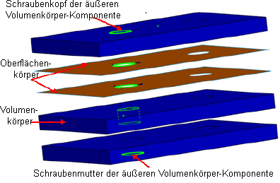 Wählen Sie diese Option aus, um mehr als zwei Komponenten mit Schrauben zu verbinden. Bei nicht-linearen Studien ist es möglich, mehr als zwei Volumenkörper durch Schrauben zu verbinden.
