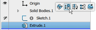 Wenn Sie im Konstruktionsstrukturbaum, in der Hauptlinkauswahl oder im Arbeitsbereich Elemente auswählen, werden Kontextsymbolleisten angezeigt, die Zugriff auf häufig durchgeführte Aktionen für Ihre Auswahl bieten.