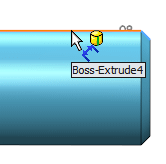 모델링 환경에서 모델뷰 방향이 주석 또는 표준도에 수직이면 지능형 치수 도구를 사용하여 프로필이 뷰 방향에 수직일 때 곡면의 실루엣을 선택할 수 있습니다.