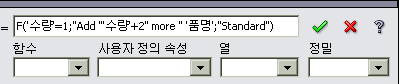 다음과 같이 문자열과 열 머리글을 입력하여 계산을 정의합니다. IF('수량.'=1;"Add "'수량.'+2" more " '품명';"Standard").