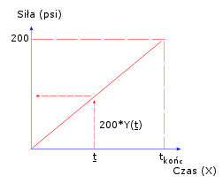 Pary X i Y są definiowane przez użytkownika lub odczytywane z pliku tekstowego. Wartość Y krzywej czasu jest mnożnikiem dla skojarzonej wielkości. Na przykład siła 200 psi skojarzona z krzywą czasu A określa siłę jak na krzywej B. W dowolnym momencie (t) wartość siły stosowana przez program jest określoną wielkością siły, którą program mnoży przez wartość Y krzywej A dla czasu (t). Można zdefiniować maksymalnie 5000 punktów.