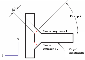 Rozmiar spoiny jest określony zgodnie z Eurokodem EN 1993-1-8: 2002, Paragraf 4.5.3.