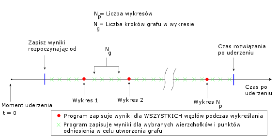 Chwile czasowe, w których jest zapisywana reakcja, mogą nie być w pełni jednorodne. Program wykorzystuje wyniki z najbliższej chwili czasowej, w której rozwiązanie jest dostępne. Ze względu na bardzo małe przyrosty czasowe wykorzystywane wewnętrznie przez program w związku z wymogami stabilności rozwiązania, reakcja jest praktycznie zapisywana w jednorodnych odstępach czasowych.