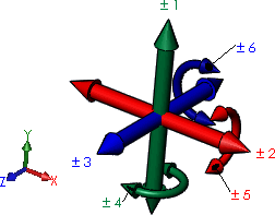 Um corpo rígido sem restrições no espaço tem seis graus de liberdade: três translacionais e três rotacionais. Ele pode se mover ao longo dos seus eixos X, Y e Z e rotação em torno dos seus eixos X, Y e Z.