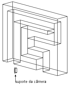 - O suporte da câmera é um modelo de uma espaçonave que inclui uma linha (oculta) e um ponto.