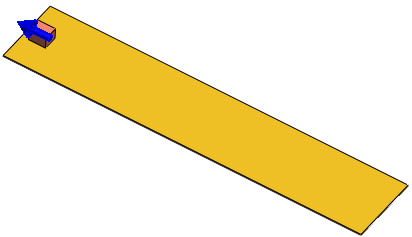 O modelo usado para esses exemplos é um bloco retangular que desliza sobre uma superfície plana. A superfície inferior do bloco tem um posicionamento coincidente com a superfície superior da chapa base. Um motor linear é aplicado ao bloco.