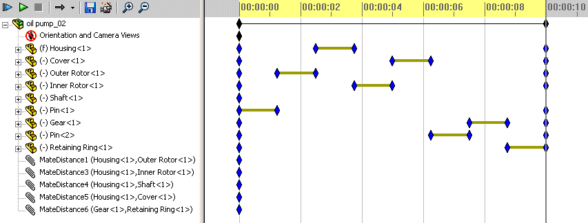 Para usar o Assistente de Animação para animações tipo explodir e recolher, você precisa primeiro criar uma vista explodida da sua montagem. A sequência de animação que você cria usando o Assistente de Animação é baseada nos mesmos cálculos.