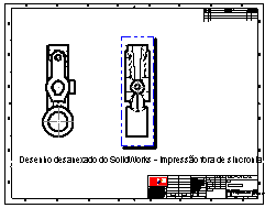 Uma marca d'água Desenho desanexado do SOLIDWORKS - Impressão fora de sincronia é aplicada nas cópias impressas de desenhos desanexados se o desenho não estiver sincronizado com o modelo.