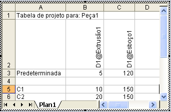 Quando o software SOLIDWORKS processa uma tabela de projeto, ele reúne a lista de nomes de configurações da coluna mais à esquerda (de cima para baixo). E então, processa os parâmetros para cada configuração (da esquerda para a direita).