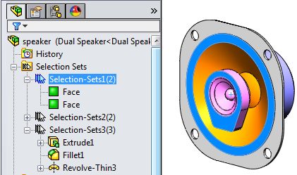 Você pode selecionar várias entidades em um modelo ou desenho e salvar as seleções como um conjunto de seleção ao qual você pode voltar a qualquer momento.