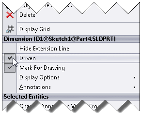 Você pode também definir várias dimensões como acionadas no PropertyManager de Dimensão clicando na guia Outras, expandindo as Opções e selecionando Acionada.