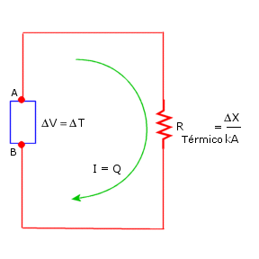 Resistencia térmica: Rthermal = Δx/(kA) Resistencia eléctrica = R