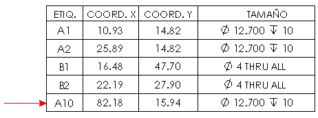 Puede especificar configuraciones de dibujo de nivel de documento para las tablas de taladros. Disponible sólo para dibujos.