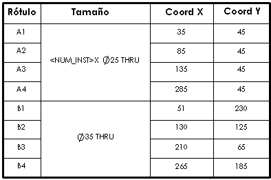 Puede especificar configuraciones de dibujo de nivel de documento para las tablas de taladros. Disponible sólo para dibujos.