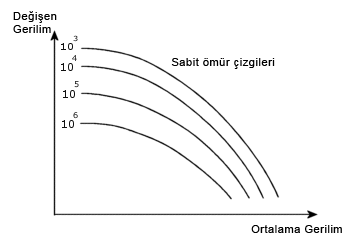 Ortalama gerilimlerin döngü hatası üzerindeki etkisi, Haigh diyagramı adı verilen aşağıdaki diyagramda gösterilmektedir.