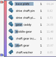 您可以按文字和按零部件显示/隐藏状态过滤“装配体可视化”列表。