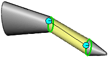 方向指定ベクトルとして使用される選択エンティティに応じて、正接拘束を適用します。ロフトは選択された直線エッジまたは軸、あるいは選択された面、または平面の法線に対して正接します。 |