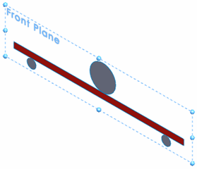 Você pode criar corpos de superfície plana ou esboços no plano de seção para criar seções 2D. O exemplo mostra um teste de curvatura em três pontos de uma chapa sob deformação plana, com os corpos de superfície criados na seção plana.