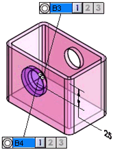 Você pode aplicar restrições entre padrões de furos*, entalhes ou ranhuras.