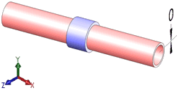 Normal ao recurso de origem pode resultar em uma montagem de pior cenário diferente. Na seguinte montagem de três peças, crie um estudo para determinar o offset máximo entre os dois tubos rígidos finais ao longo do eixo