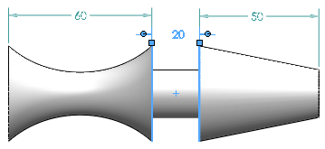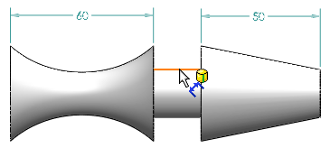 Anteriormente, era necesario seleccionar una cara para crear cotas de tamaño o ubicación. Ahora, puede seleccionar aristas de silueta. En los ejemplos siguientes, cada puntero muestra una arista y cota de silueta seleccionada.