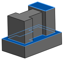 Bir modelin arkasında dikdörtgen yükseklik ekstrüzyonunu tanımaya çalıştığınızı varsayın. Seçili obje için alt yüz ve Seçili obje ve üst yüz için Bir sonrakine kadar'ı seçtiyseniz diğer ekstrüzyonları tanımlayan iç çerçeveler olduğundan FeatureWorks yükseklik ekstrüzyonlarını tanıyamaz.